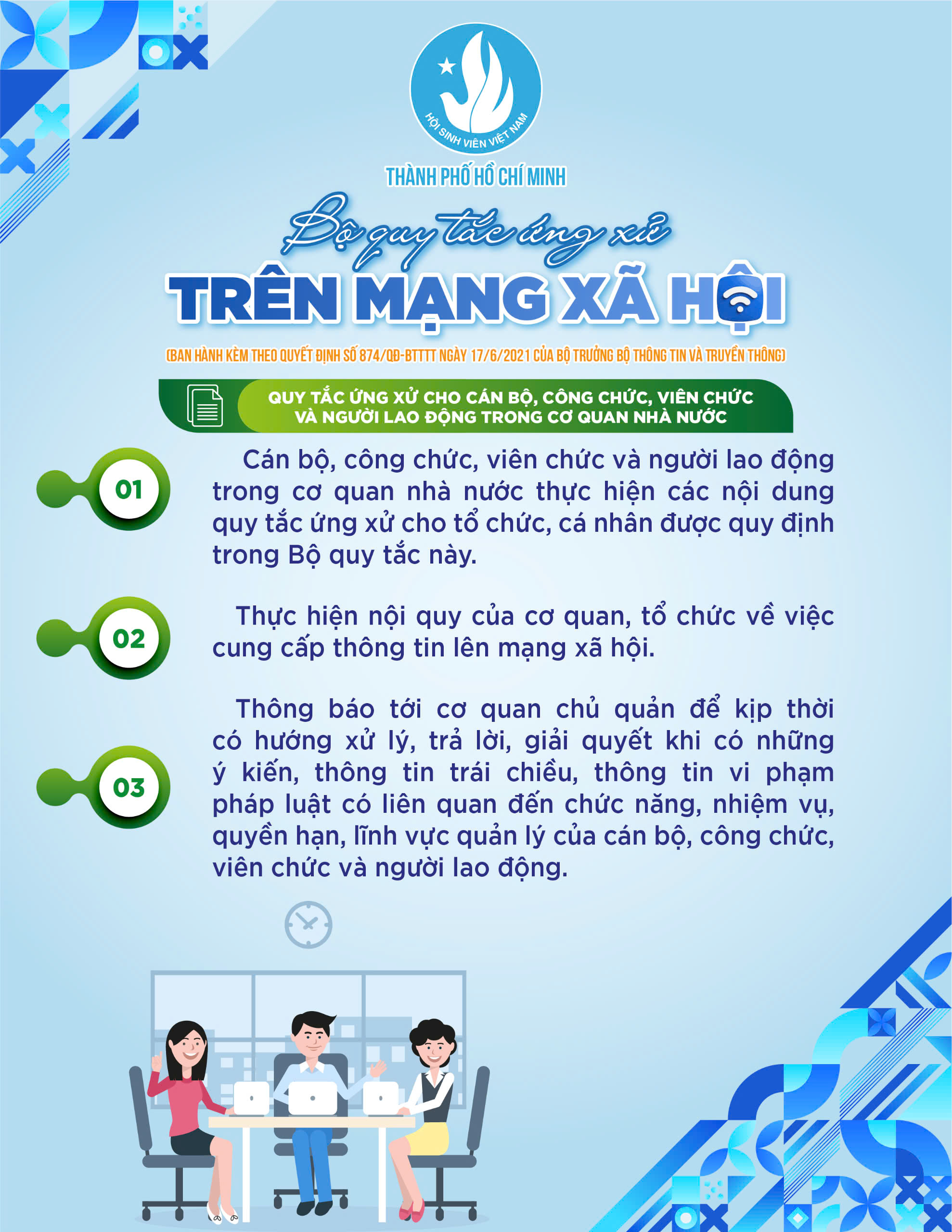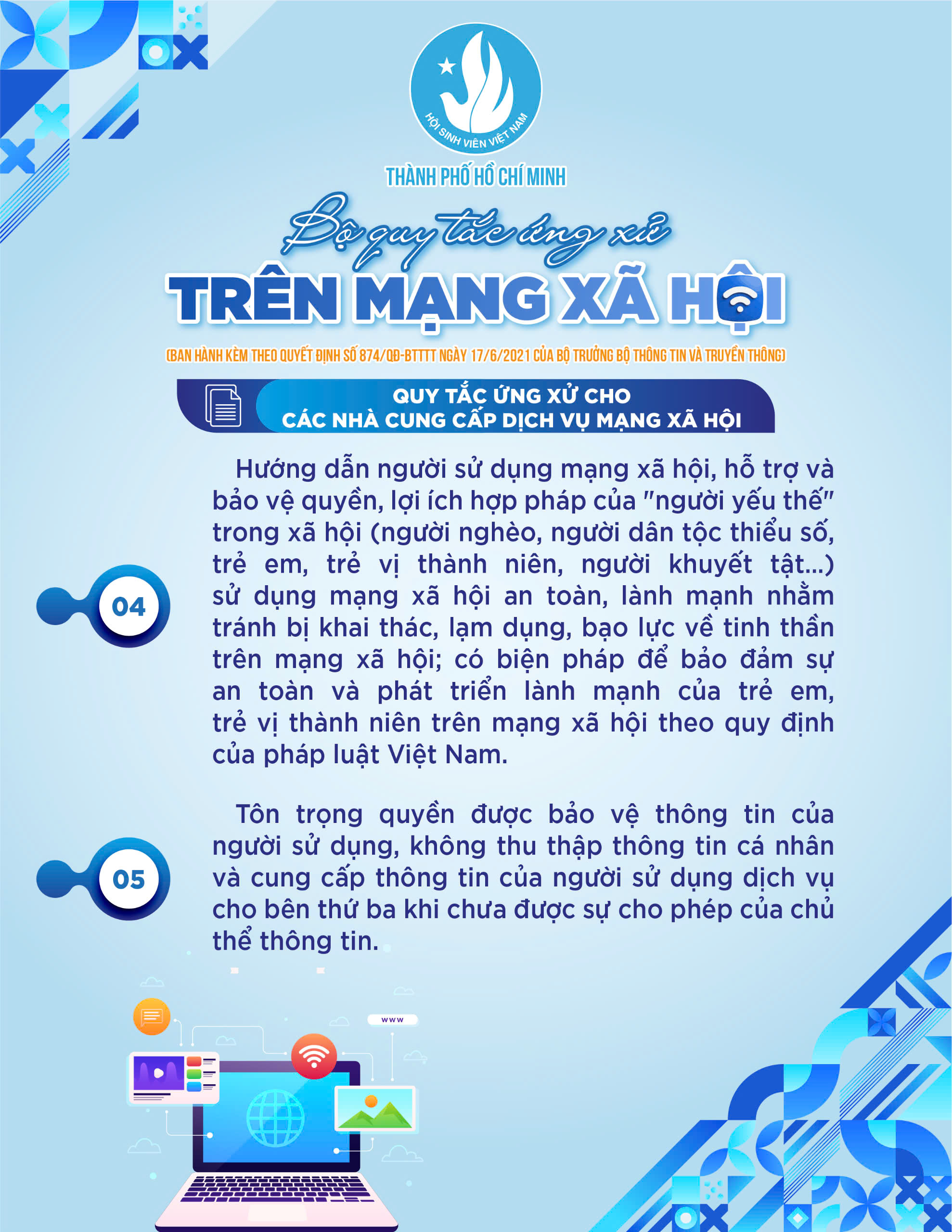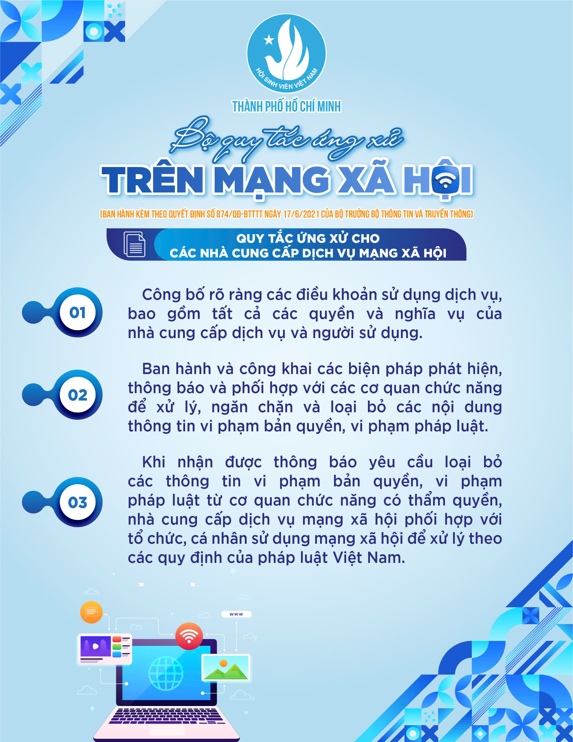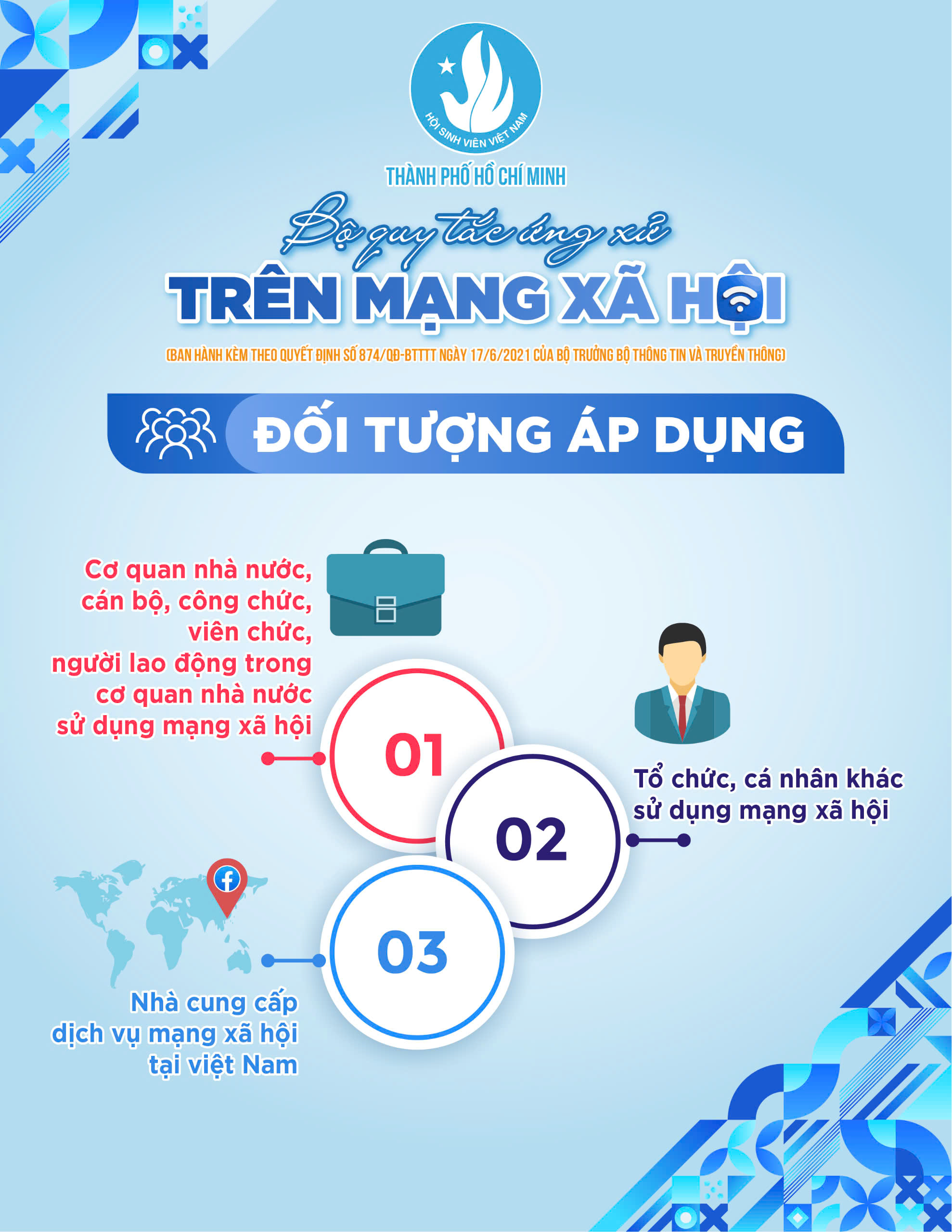 Hội Sinh viên Việt Nam Thành phố giới thiệu đến các bạn Bộ quy tắc ứng xử trên mạng xã hội, được ban hành theo Quyết định số 874/QĐ-BTTTT ngày 17/6/2021 của Bộ Thông tin và Truyền thông.