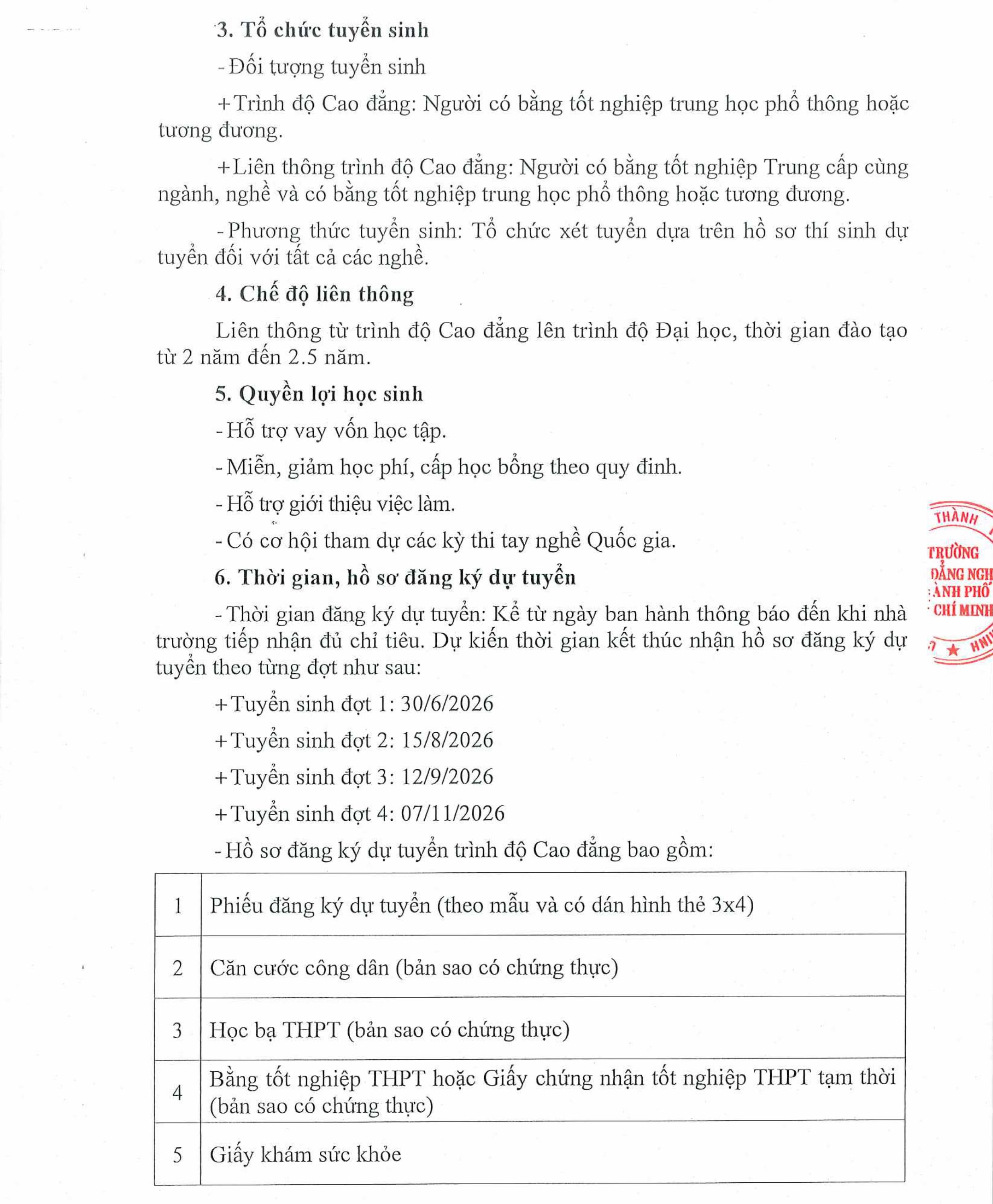File thông báo tuyển sinh Cao đẳng, Cao đẳng liên thông năm học 2026 - 2027 Xem tại đây