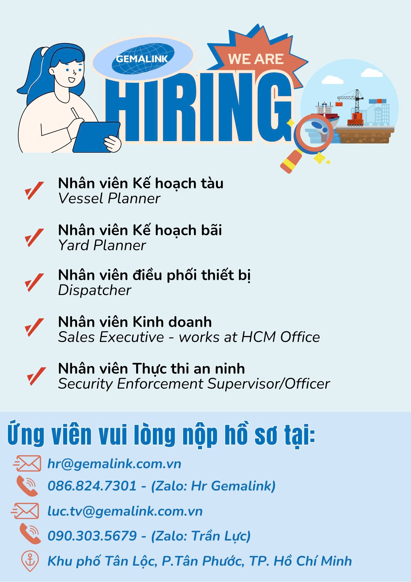 Cảng Quốc tế Gemalink tuyển dụng nhiều vị trí