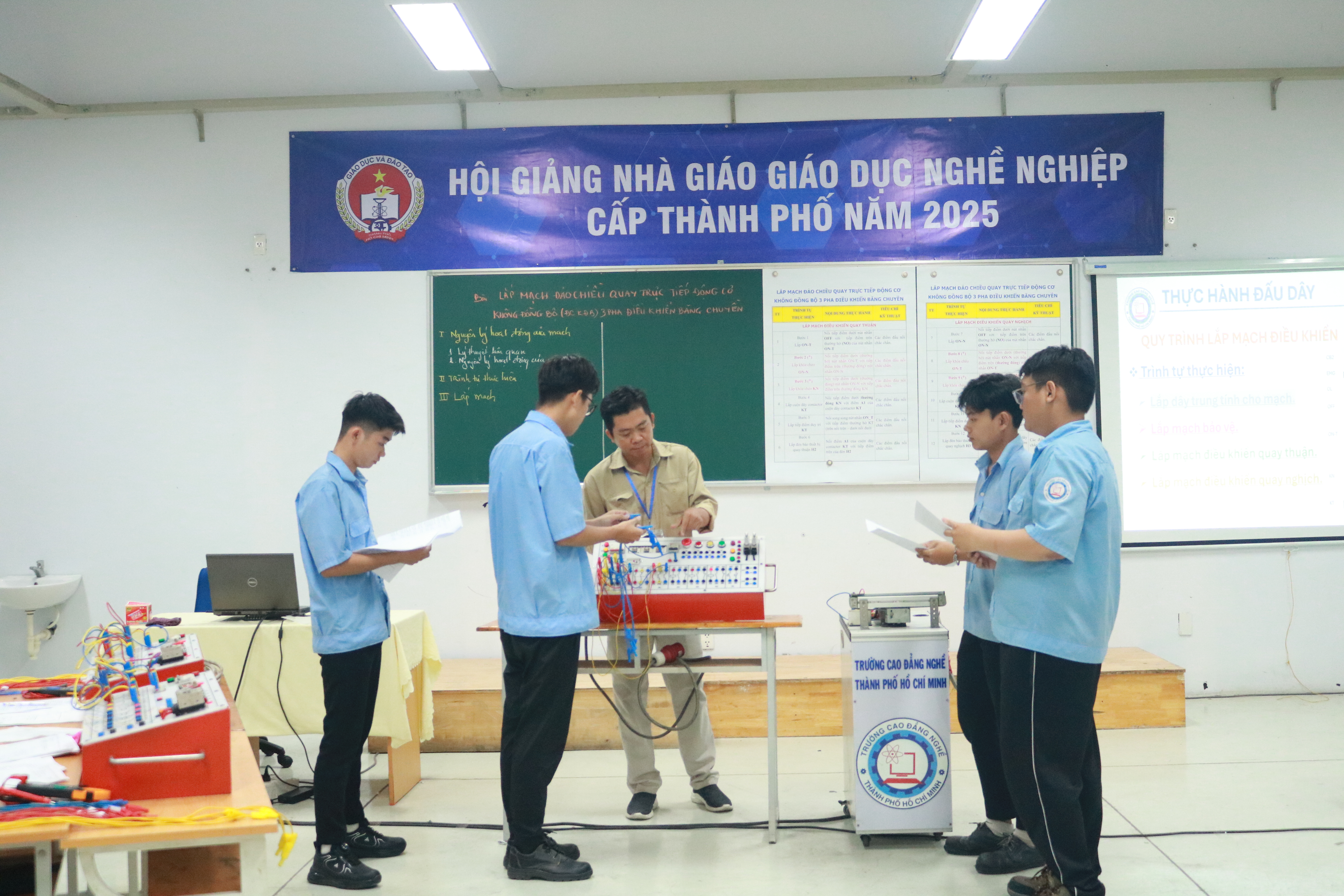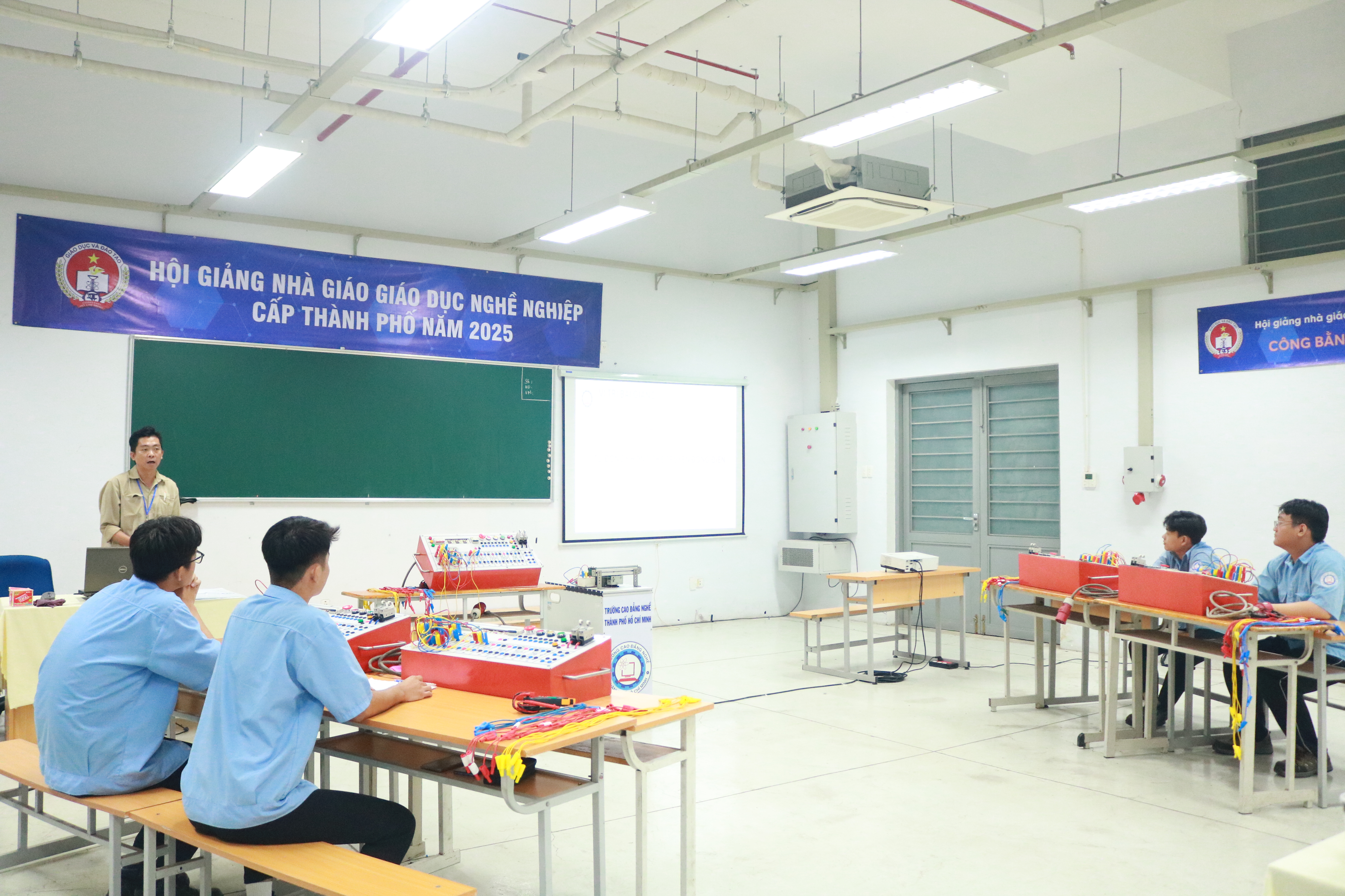 Chiều nay, ngày 04/11/2025, ThS. Nguyễn Minh Tuấn - Giảng viên khoa Điện và Điện lạnh Trường Cao đẳng nghề Thành Phố Hồ Chí Minh đã hoàn thành xuất sắc phần thi của mình Trong Hội giảng nhà giáo giáo dục nghề nghiệp cấp Thành phố năm 2025.