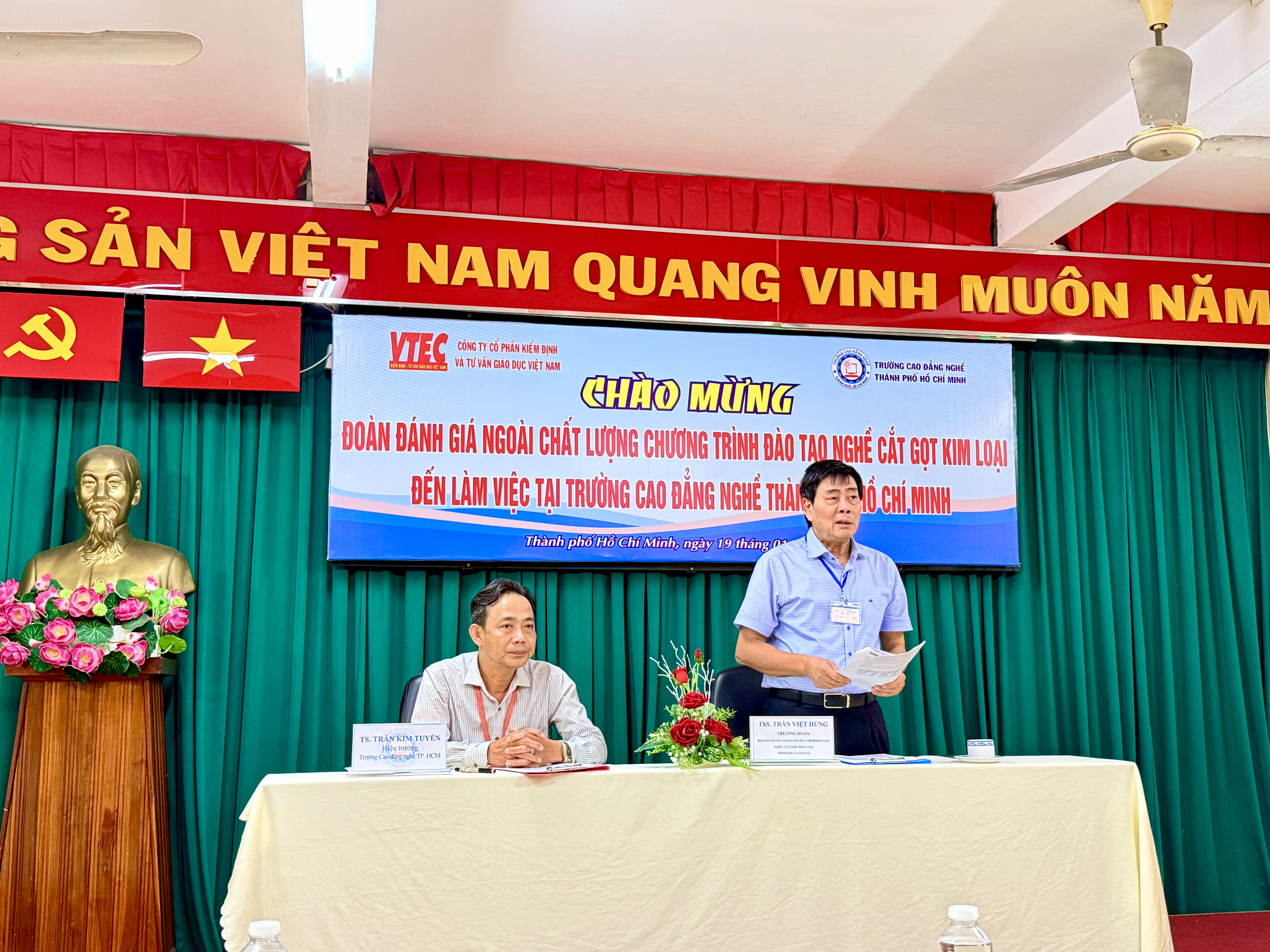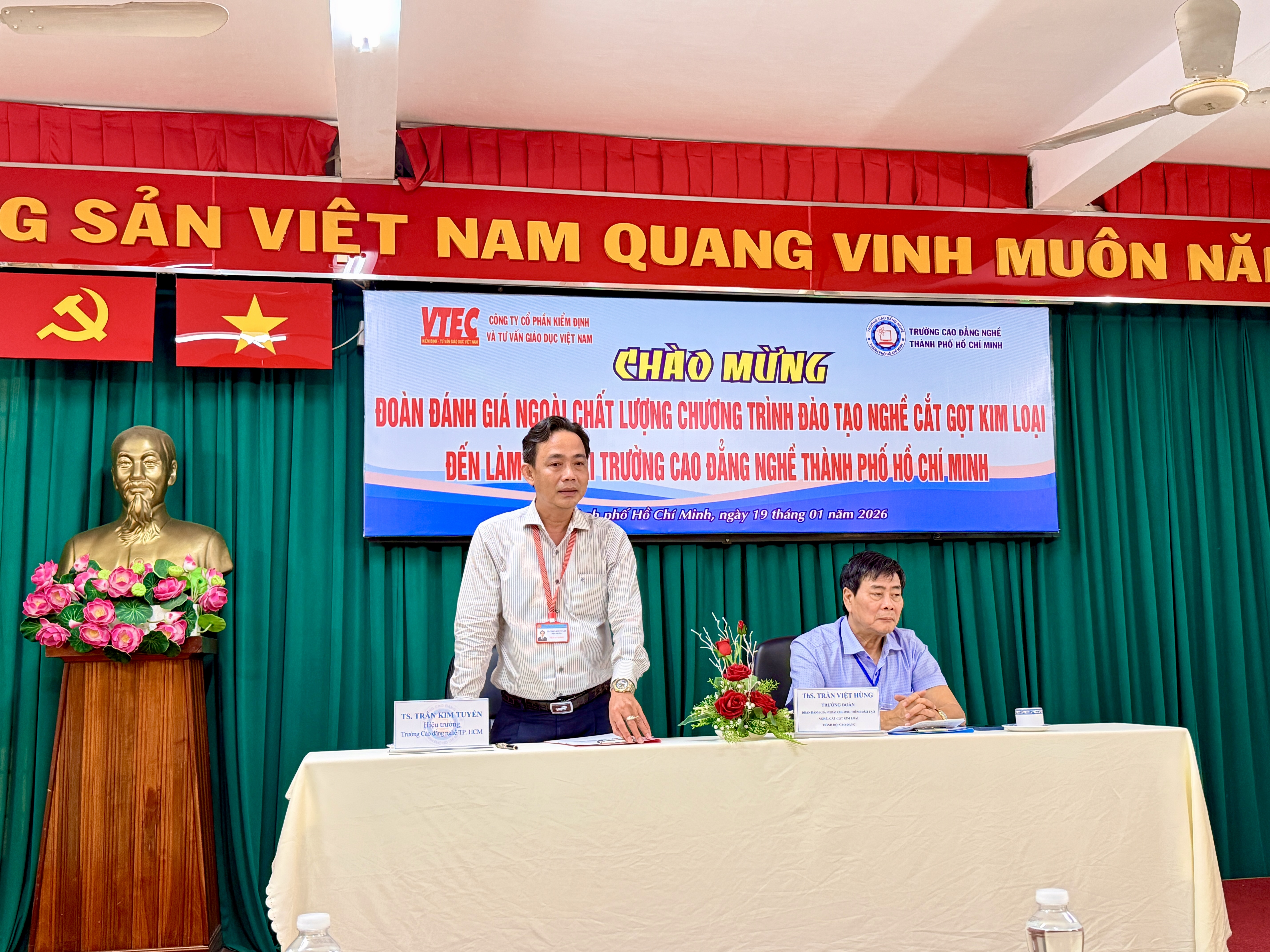 Phát biểu tại buổi họp kết luận ngày 22/01/2026, ThS.Trần Việt Hùng – Trưởng đoàn đánh giá ngoài cho biết, đoàn đã phối hợp tích cực với nhà trường để rà soát, đánh giá khách quan, giúp Trường Cao đẳng nghề Thành phố Hồ Chí Minh kiểm tra và hoàn thiện mọi công tác, kết thúc chương trình kiểm định 1 cách tốt đẹp, đánh giá chương trình đào tạo nghề Cắt gọt kim loại đạt tiêu chuẩn kiểm định chất lượng chương trình đào tạo.